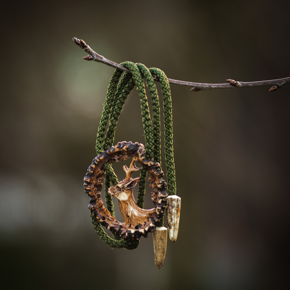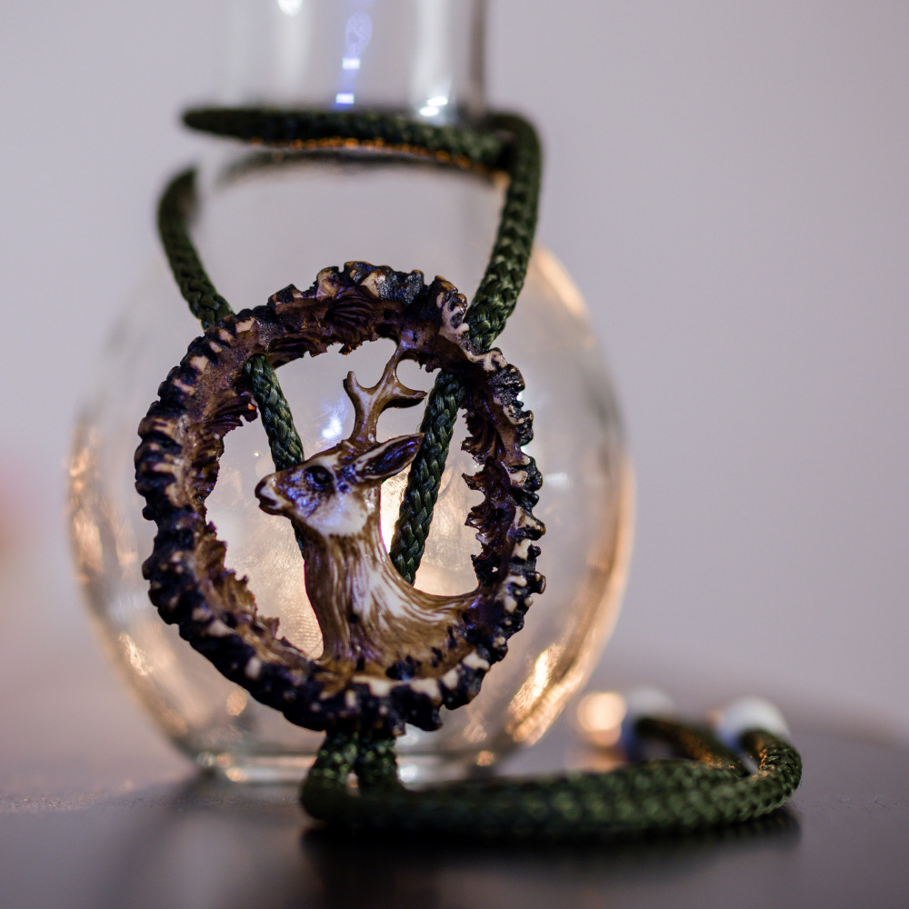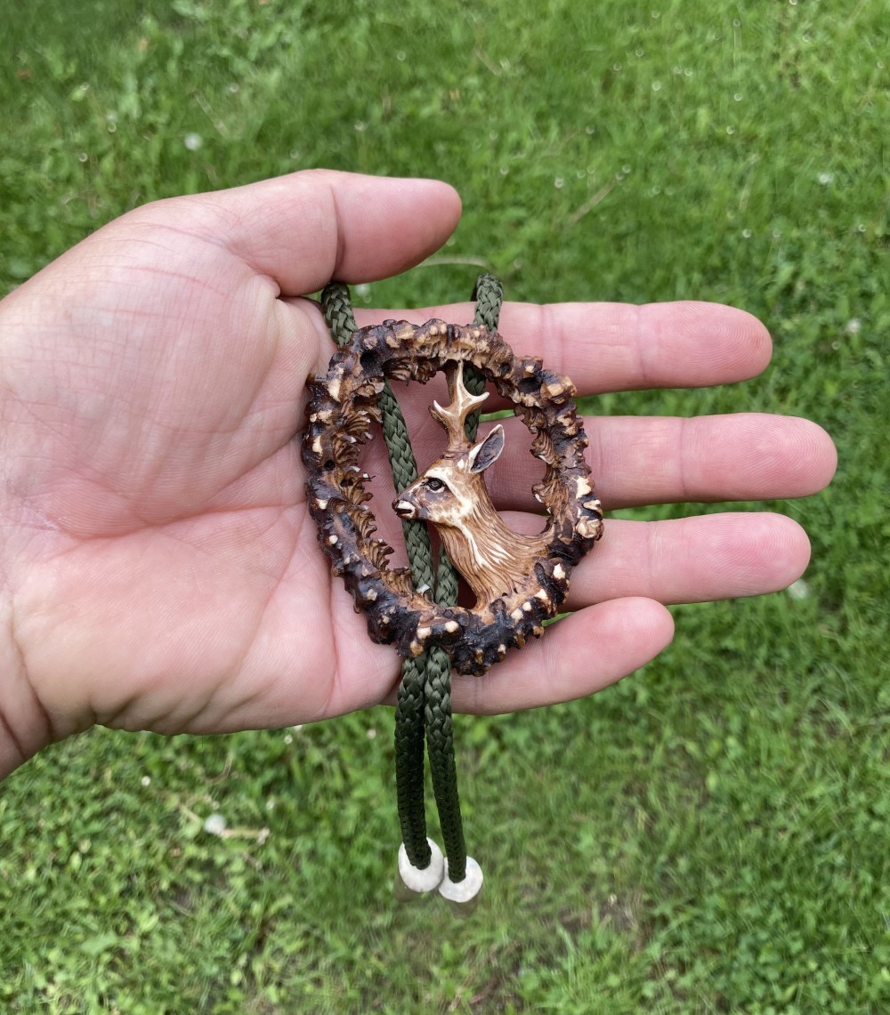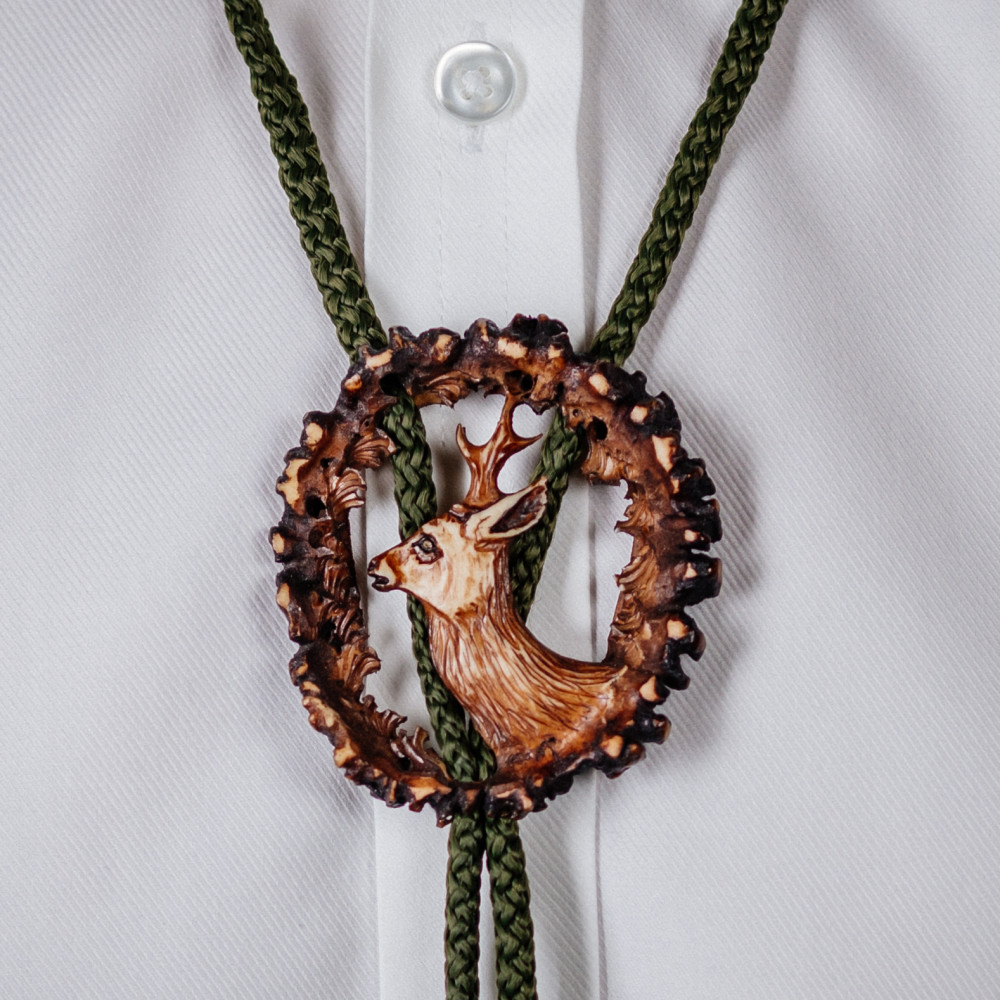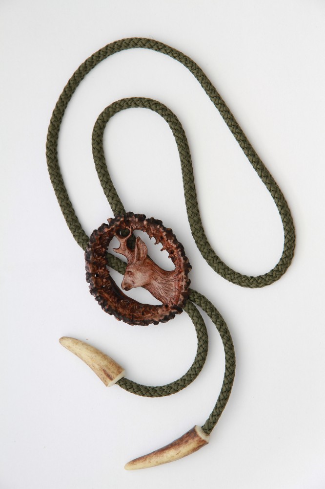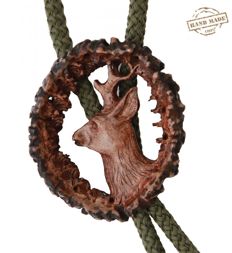 Cravata americana bolo sculptata in corn de cerb carpatin motiv caprior, maro